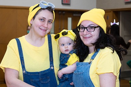 Johanna and Aleza Ruse-Finver and their 8-month-old daughter, Aliyah, dressed as Minions, those adorably-diabolical creatures famous from the Despicable Me series.